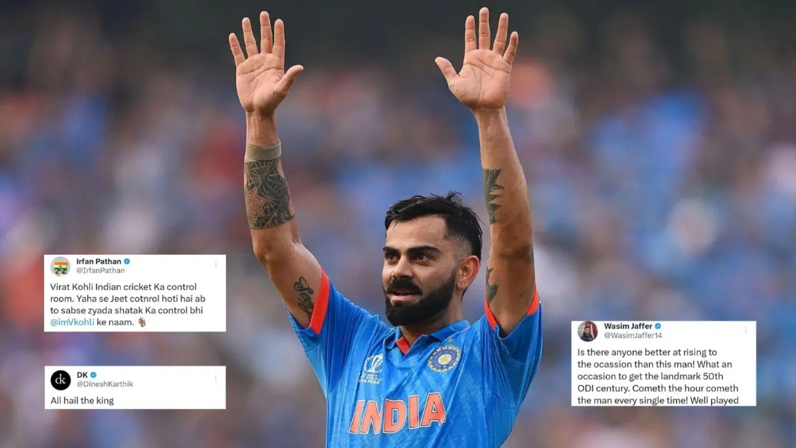 உலகக்கோப்பை கிரிக்கெட் தொடரின் அரையிறுதி போட்டியில் சதம் அடித்து பல சாதனைகளும் படைத்த விராட் கோலிக்கு சமூக வலைதளங்களில் வாழ்த்துக்களும், பாராட்டுக்களும் குவிந்து வருகிறது.