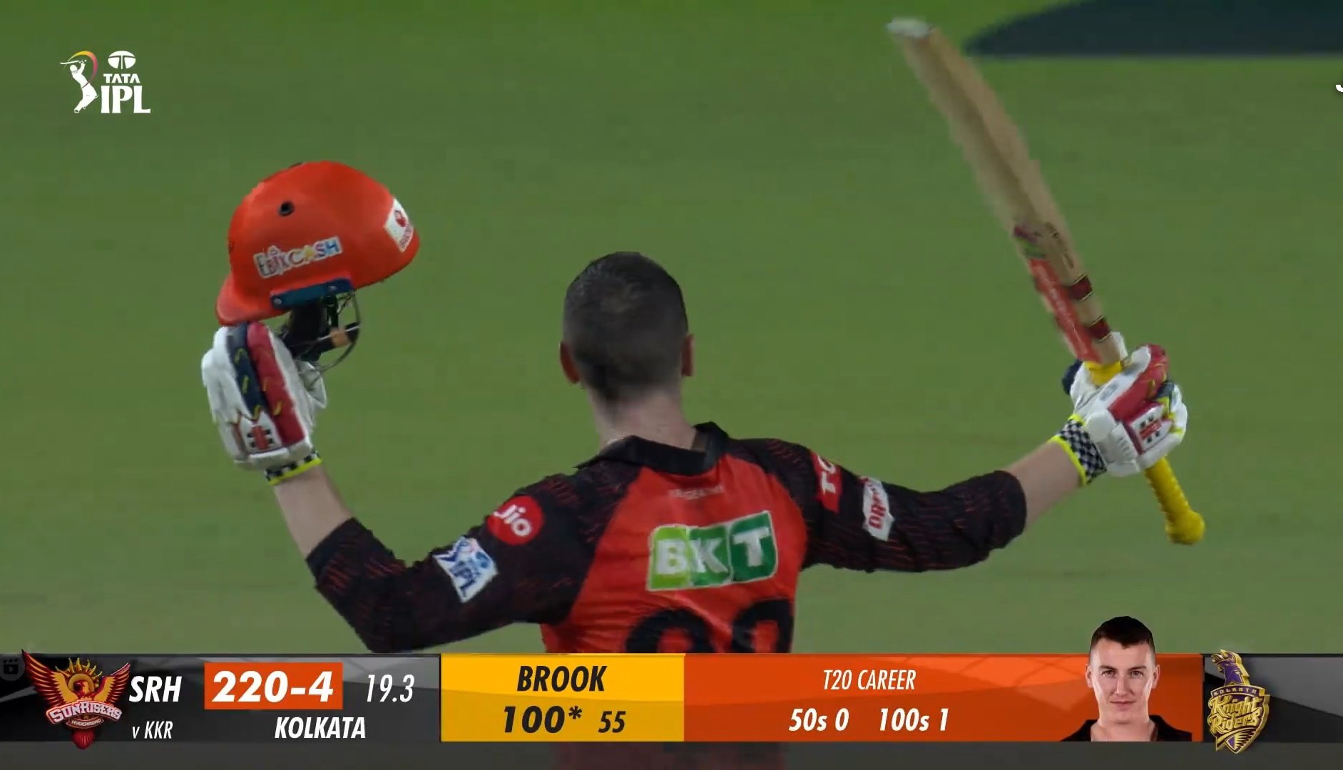 கொல்கத்தா அணிக்கு எதிரான போட்டியில் சதம் அடித்து அசத்தினார் ஹாரி புரூக். 20 ஓவர்கள் முடிவில் 4 விக்கெட்டுகள் மட்டுமே இழந்து 228 ரன்கள் குவித்தது சன்ரைசர்ஸ் ஹைதராபாத் அணி.