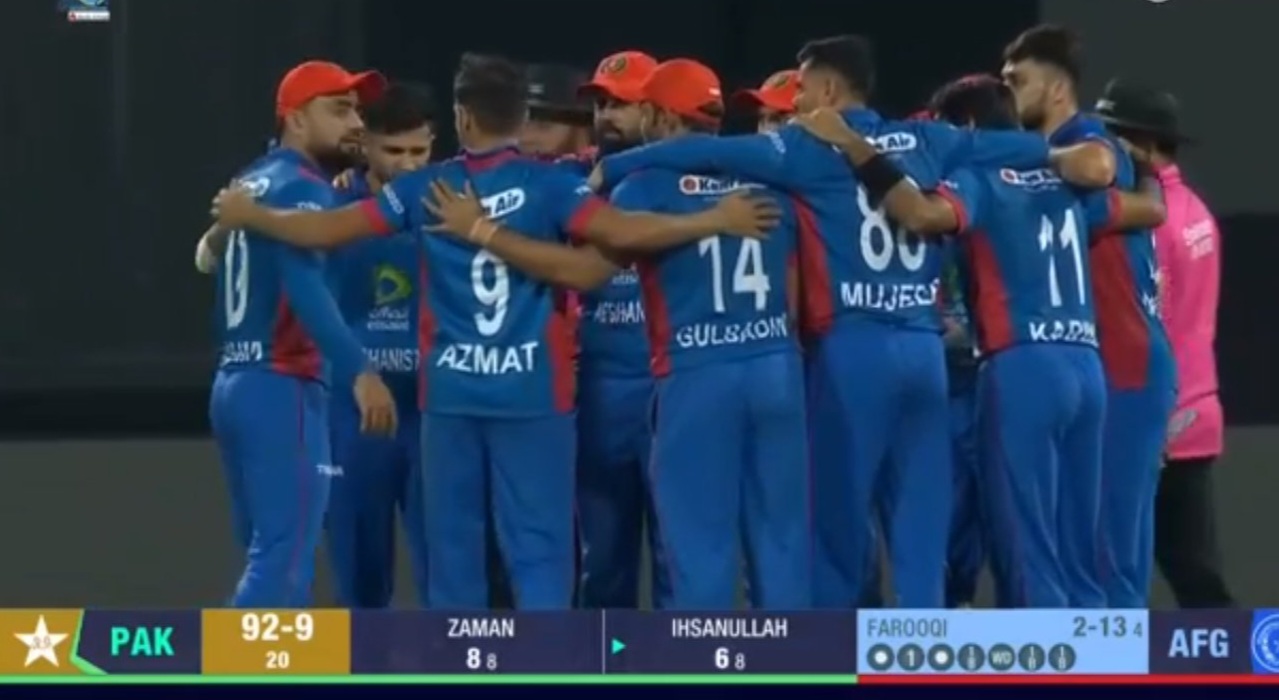 ஆப்கானிஸ்தானுக்கு எதிரான முதல் டி20 போட்டியில் 20 ஓவர்களில் 92 ரன்களுக்கு 9 விக்கெட்டுகளை இழந்து பரிதாபமான நிலைக்குத் தள்ளப்பட்டுள்ளது பாகிஸ்தான் அணி.